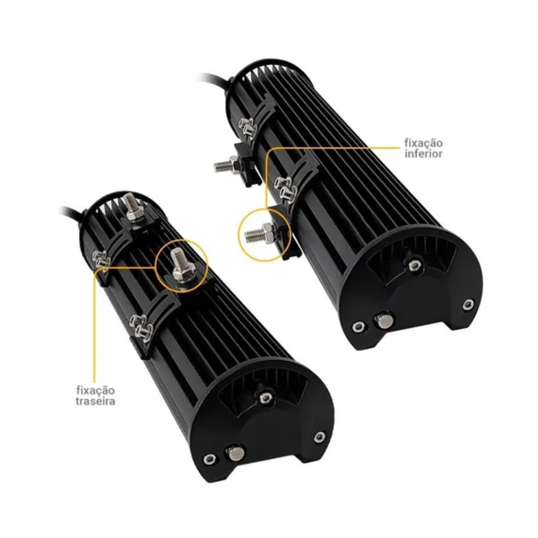 Barra Off Road de LED tem 3 vezes mais potente que as comuns similares, pois possui muito mais chips de LED, além de foco duplo/combo com maior abertura lateral de 150 e longo alcance com lentes de 30.