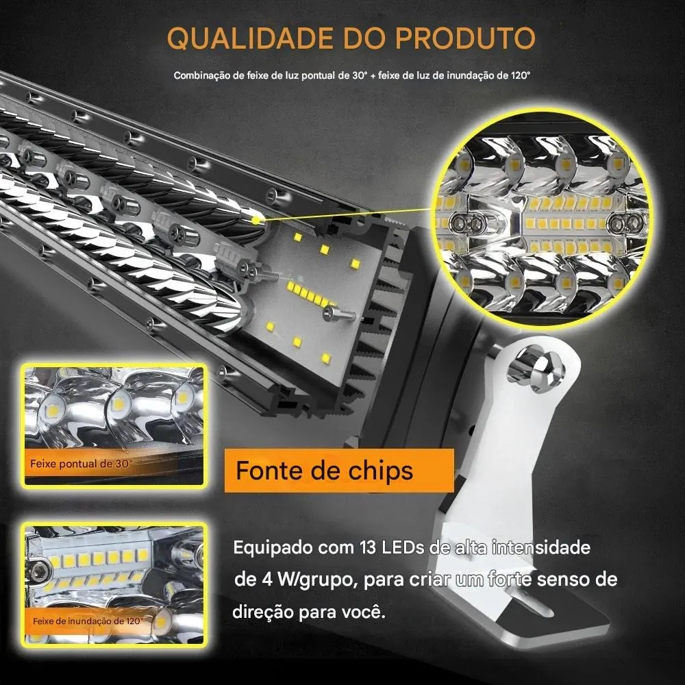 A barra de LED em questão se destaca pela sua excepcional forma curvada espalhando