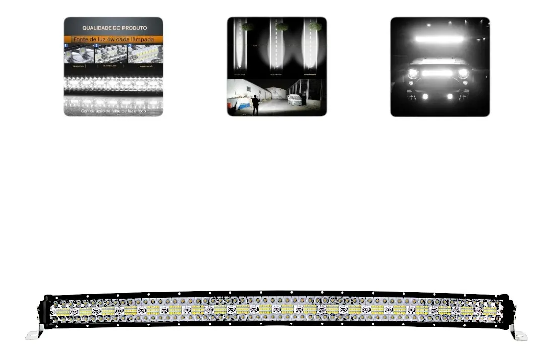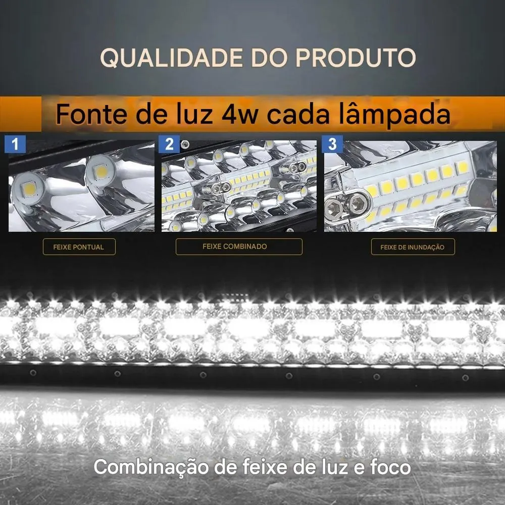A barra de LED em questão se destaca pela sua excepcional forma curvada espalhando
