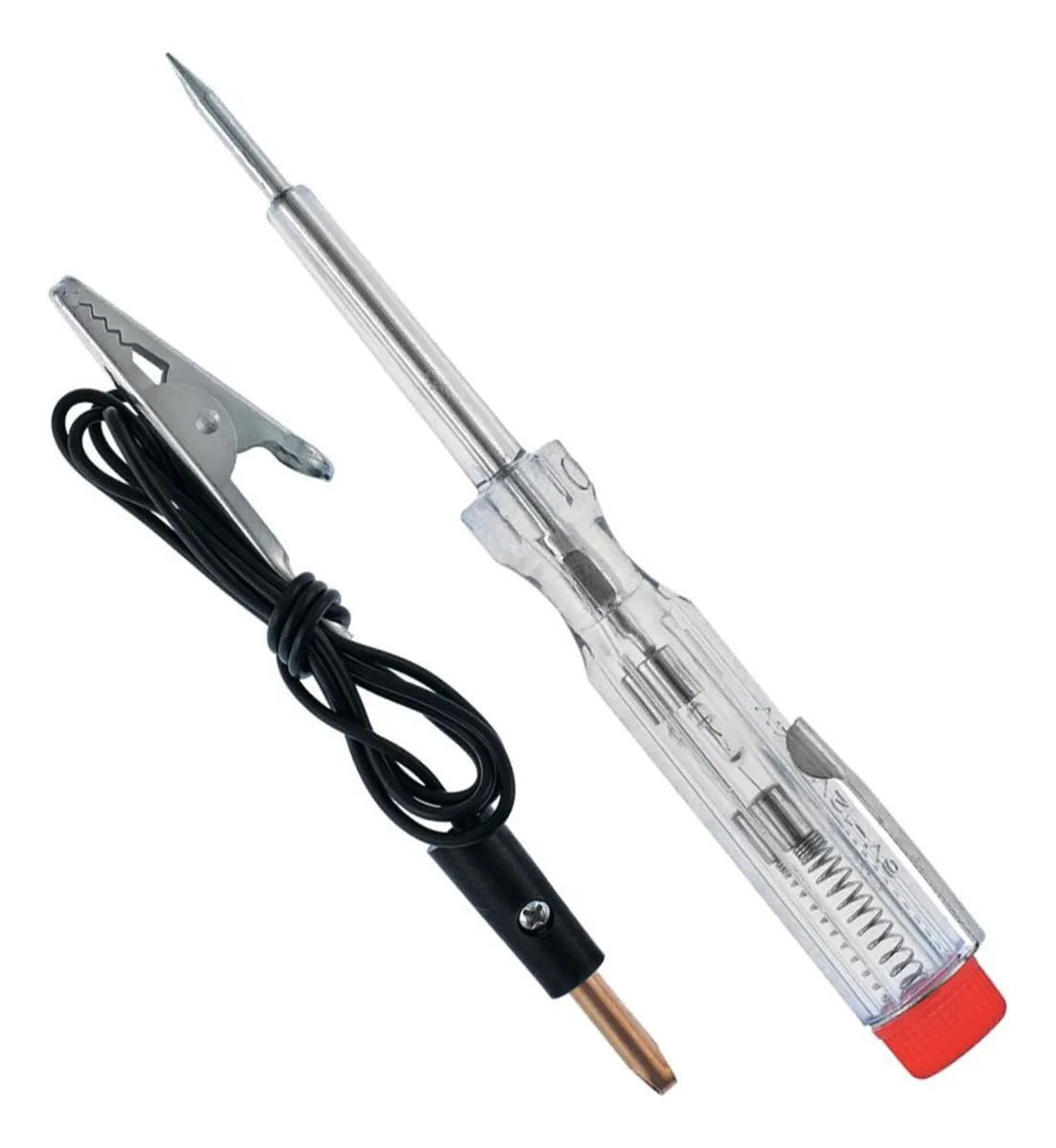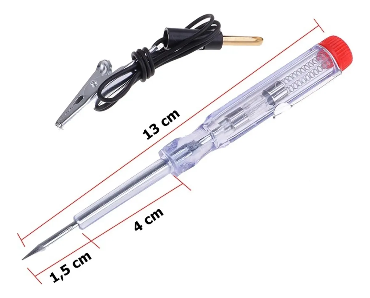 – Encaixe o pino do cabo na chave teste, prenda a garra jacaré em algum ponto terra e encoste a ponta de prova.