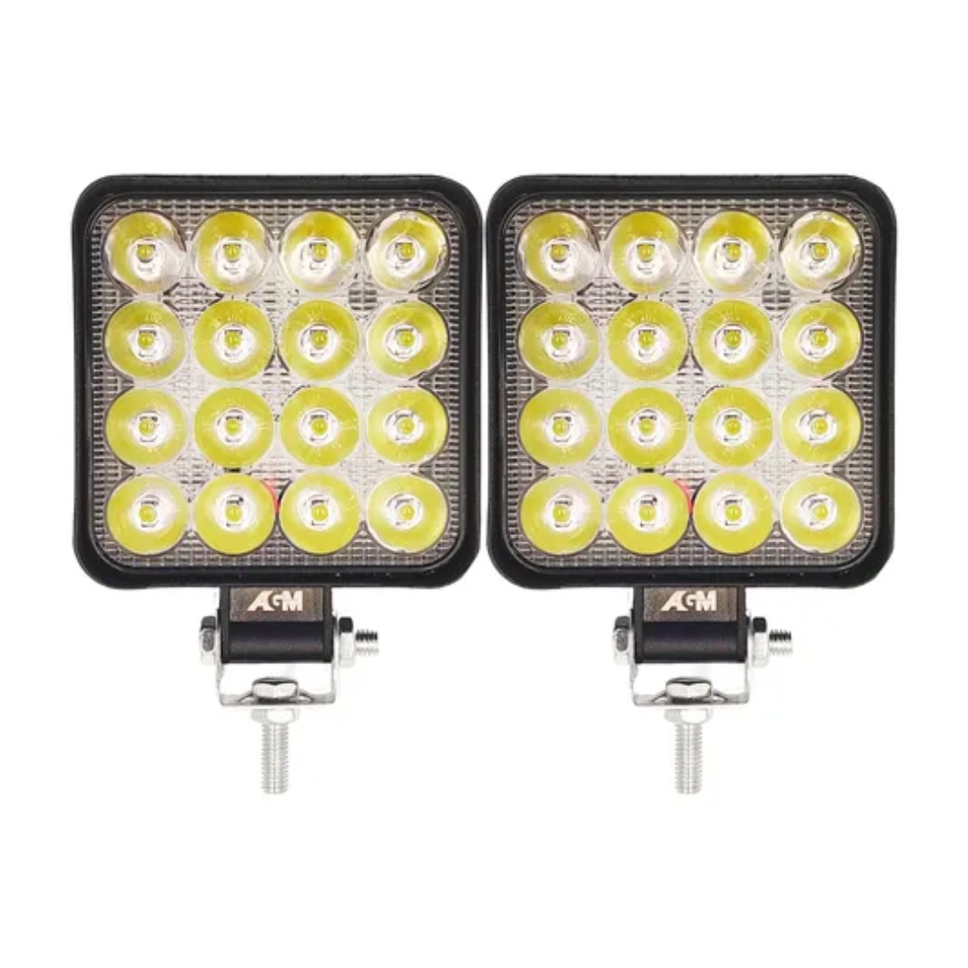 ESPECIFICAÇÕES TÉCNICAS: TENSÃO DE FUNCIONAMENTO: 12V/24V TECNOLOGIA DA LÂMPADA: LED CREE POTÊNCIA TOTAL: 48W POTÊNCIA POR LED: 3W QUANTIDADE DE LEDS: 16 TEMPERATURA DA LUZ: 6000K BRANCO FRIO LENTE: CRISTAL FLOOD (INUNDAÇÃO) MATERIAL DA CARCAÇA: ALUMÍNIO MATERIAL DA LENTE: POLICARBONATO MATERIAL DO SUPORTE PARA FIXAÇÃO: AÇO VIDA ÚTIL ESTIMADA: 50000 HORAS DIMENSÕES DO PRODUTO: 85X85X20MM
