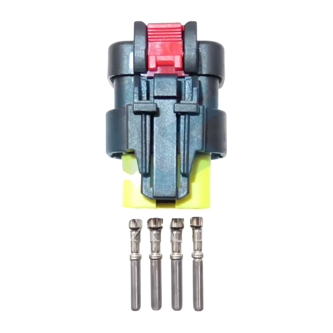 KIT CONECTOR 4 VIAS AMARELO TRATORES E MAQUINARIAS AGRÍCOLAS 1 conjunto feminino: 1 x conector fêmea 4 x Terminal Fêmea CÓDIGOS REFERÊNCIA ETE4819/04 ETE5519/04 57M9817 776487-1 776524-1