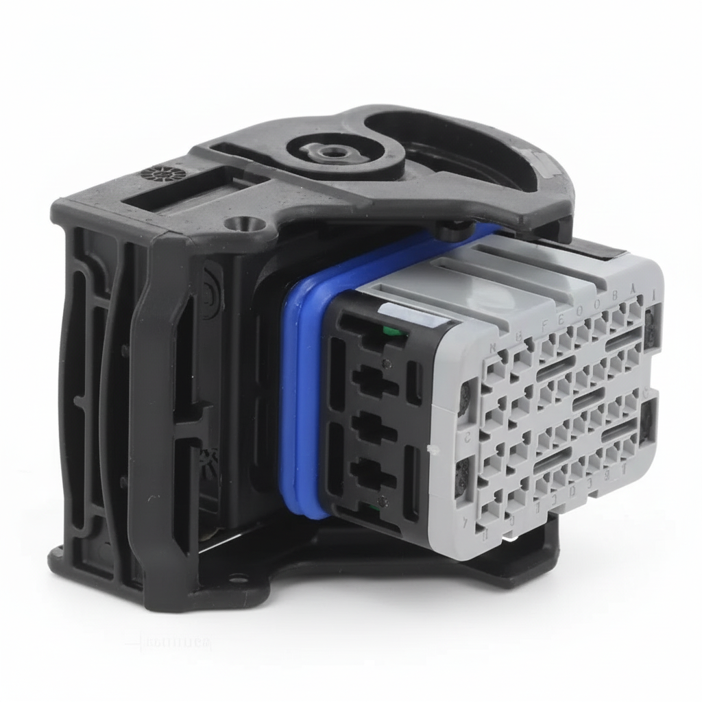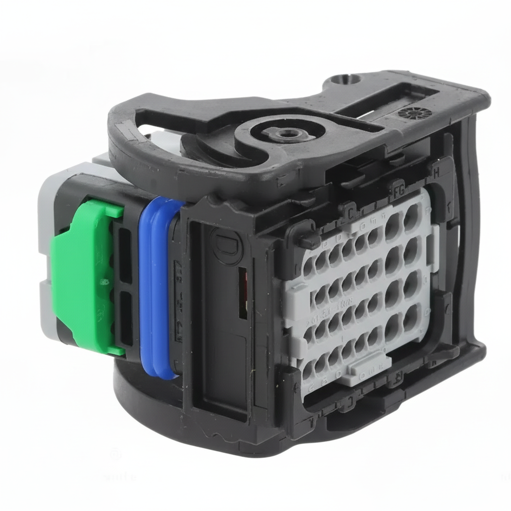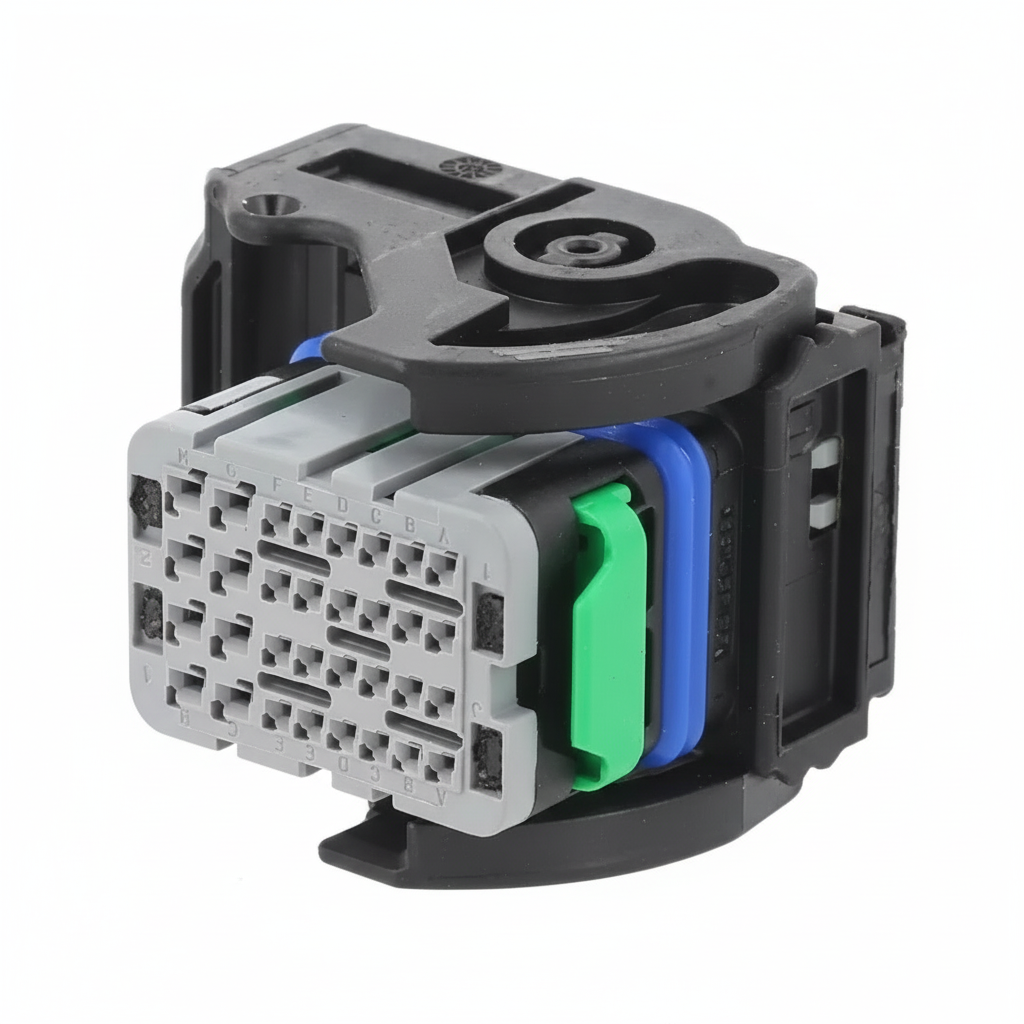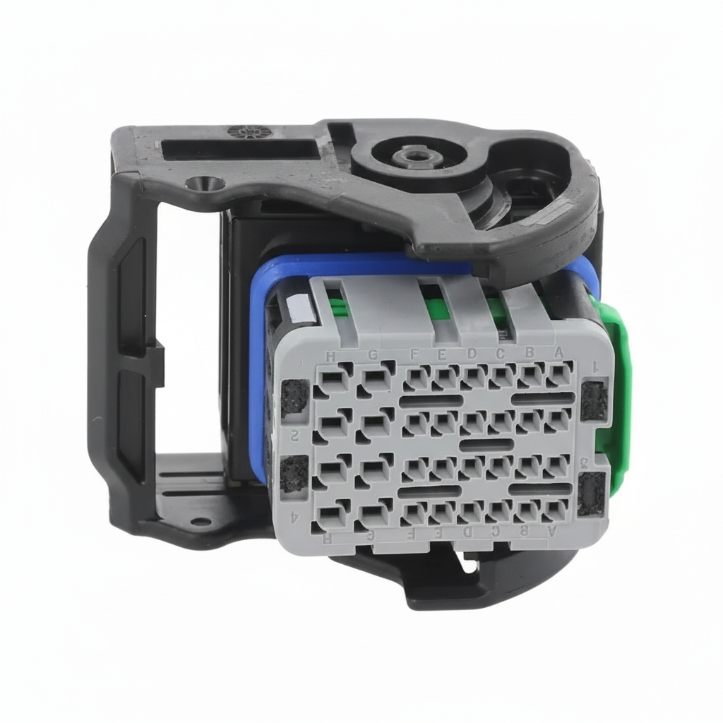 Kit original Molex da linha CMC, com conector soquete 32 vias e terminais inclusos, ideal para reparo e substituição em chicotes de máquinas agrícolas e linha pesada (aplicação típica em ECU / HU / VCU).