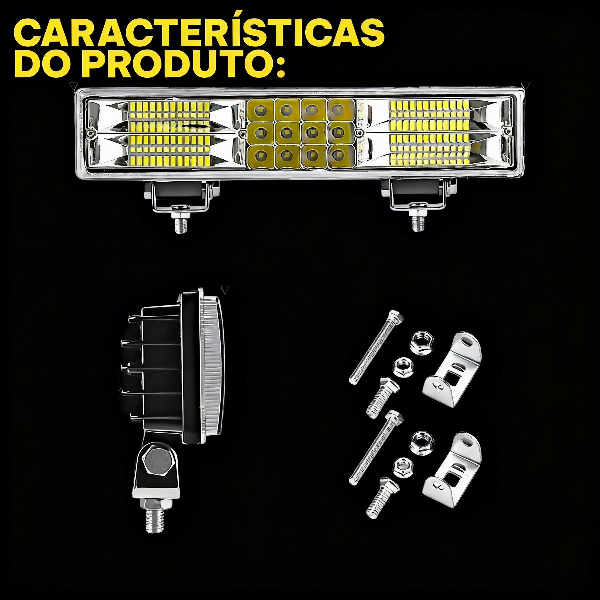 Ideal para quem quer uma iluminação forte e de qualidade Perfeito para uso em: Moto, Quadriciclo, 4×4 Off-Road, Pickups, Caminhão, Trilha, Veículos de trabalho, Trator, Trailer, Camping, Guincho, Plataforma, Reboque, Escavadeira, Caçamba, Guindaste, Engenharia, Emergência, Sinalização Pública, Máquinas Agrícolas e Iluminação em Geral.