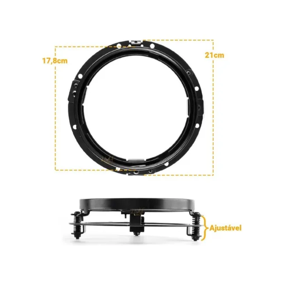 Apresentamos o suporte ideal para quem busca modernizar e aprimorar a iluminação de seu veículo com farol de LED. Construído em metal de alta resistência e acabamento preto, este suporte garante durabilidade e qualidade. Com parafusos de regulagem do ângulo do farol, proporciona a luminosidade ideal, evitando excessos de altura ou baixa.